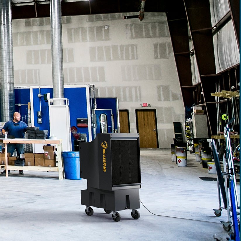 - Simple Set Up: This Big Ass Fans Cool-Space evaporative cooler comes factory-tested and ready to use. Simply attach the wheels and connect a water source for immediate cooling.