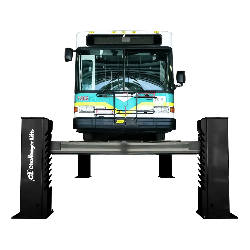 The Challenger 44050E HD Chain-Driven 4-Post Truck Lift is perfect for businesses working with heavy-duty vehicles like waste and construction trucks. With an extended overall length of 41 feet, it accommodates longer vehicles, providing added versatility. Its 50,000 lb capacity, dual hydraulic cylinders, and variable-synchro power system allow precise lifting of vehicles with heavier front or rear axles. Diamond-plated anti-skid runways, adjustable widths, and twin ladder lock positions ensure maximum safety and flexibility. The runway rail system supports rolling jacks and accessories for added convenience. Also available in standard (44050) and extra-long (44050X) models.